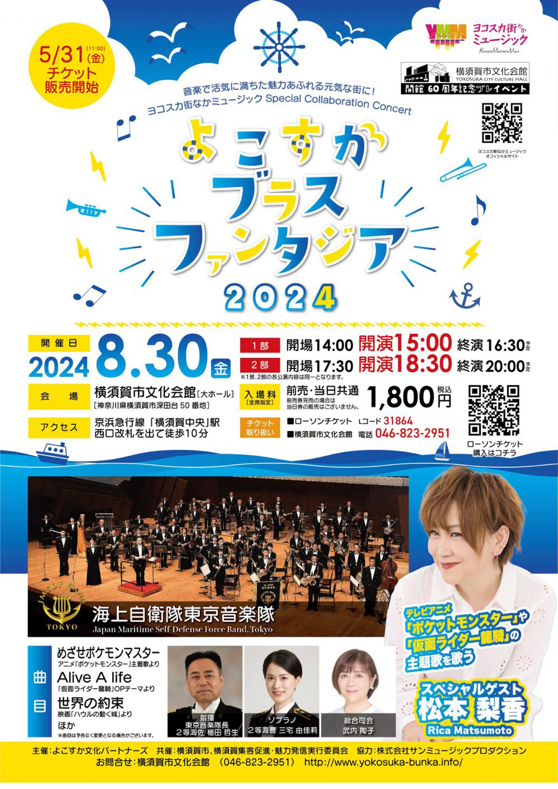 【海上自衛隊東京音楽隊】よこすかブラスファンタジア2024 イベント告知 X Facebook はてブ Pocket LINE コピー 2024.08.18 よこすかブラスファンタジア2024が8月30日(金)に横須賀市文化会館大ホールにて開催されます。海上自衛隊東京音楽隊の演奏も楽しむことができます。前売り・当日ともに¥1800との事です。