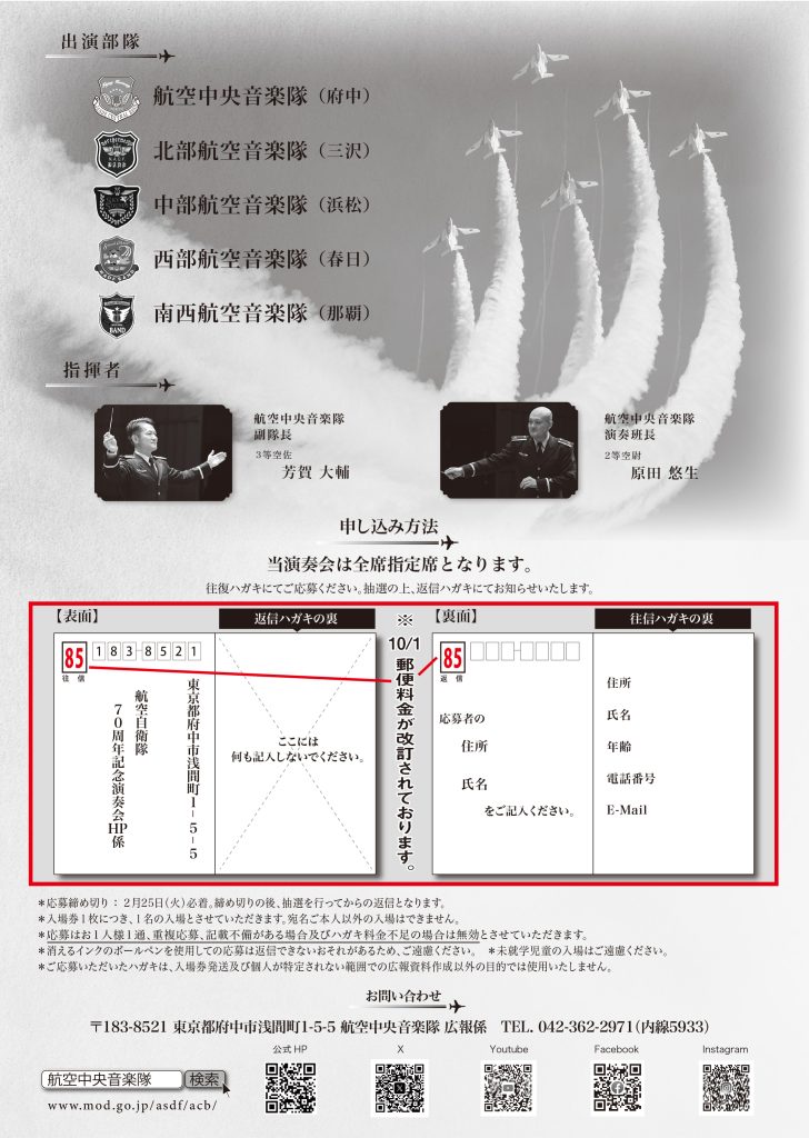 2025年3月21日(金)にすみだトリフォニーホールにおきまして、「航空自衛隊70周年記念演奏会」が19時(開場18時)開演されます。抽選申込みは、往復ハガキ締切 2025/2/25必着。