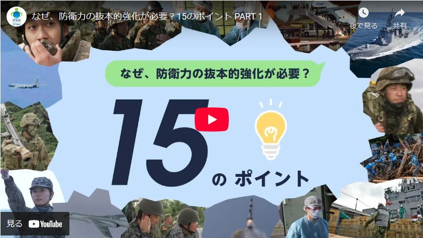 事務局だより日本周辺における安全保障環境や防衛費の使い方など、 なぜ防衛力の抜本的強化が必要なのかを15のポイントに分けて解説した動画です。防衛省・自衛隊公式動画チャンネル【modchannel】より。
