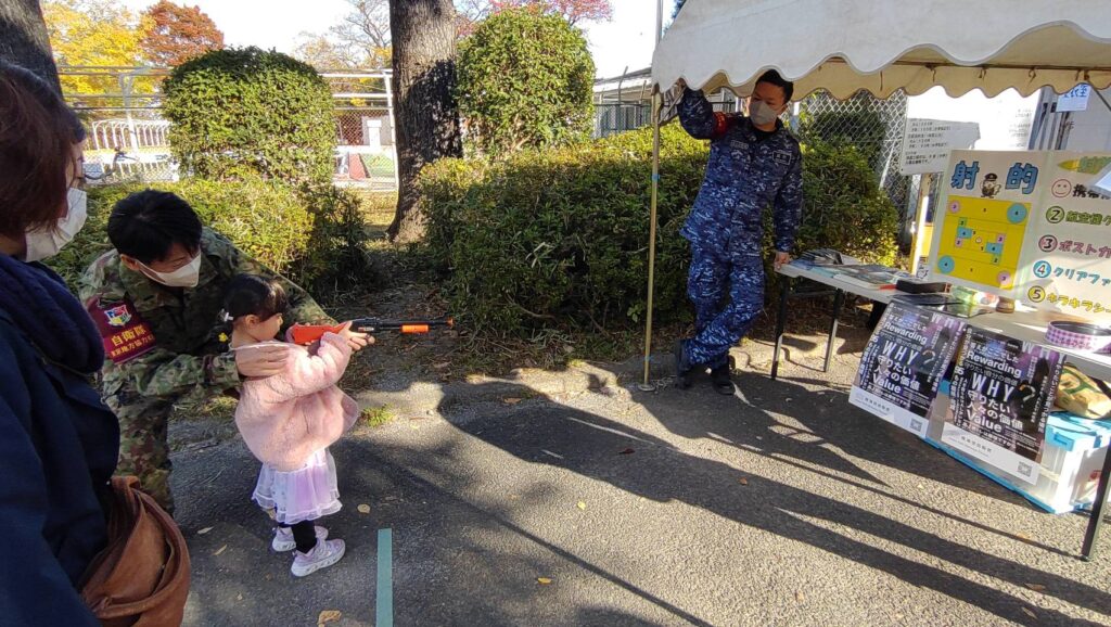 自衛隊関連グッズの販売ブースを展開し、おもちゃ・ぬいぐるみ・お菓子・レトルト食品などの物販をしました。