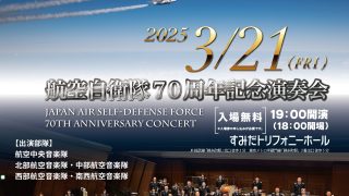 2025年3月21日(金)にすみだトリフォニーホールにおきまして、「航空自衛隊70周年記念演奏会」が19時(開場18時)開演されます。抽選申込みは、往復ハガキ締切 2025/2/25必着。