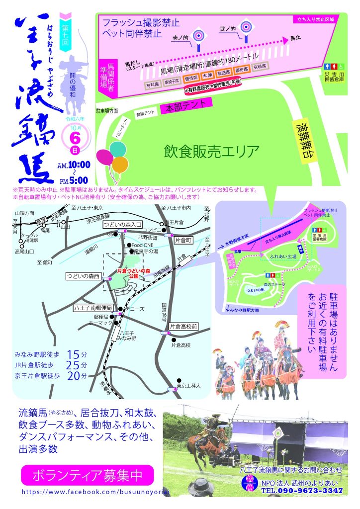 令和六年「第七回」八王子流鏑馬が2024年10月6日(日)10:00~17:00に片倉つどいの森公園にて開催されました。